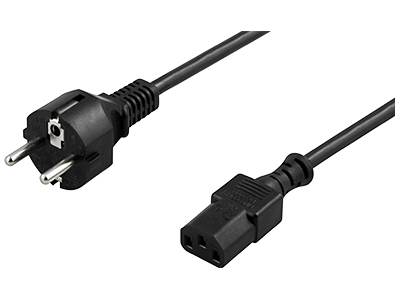 La referencia LA-108 es un cable de alimentación con conectores polarizados de 10A. Consta de un conector hembra (IEC C13) y otro Schuko macho.